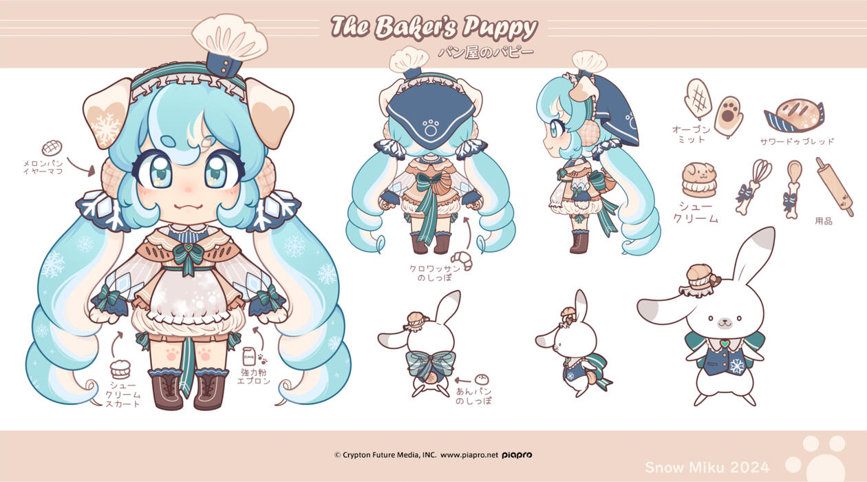 the baker’s puppyentry for the snow miku 2024 design contest, for the theme of hokkaido’s baked goods.