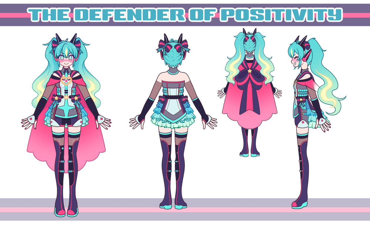 the defender of positivityentry for the miku expo 2024 design contest, for the theme of universal positivity.