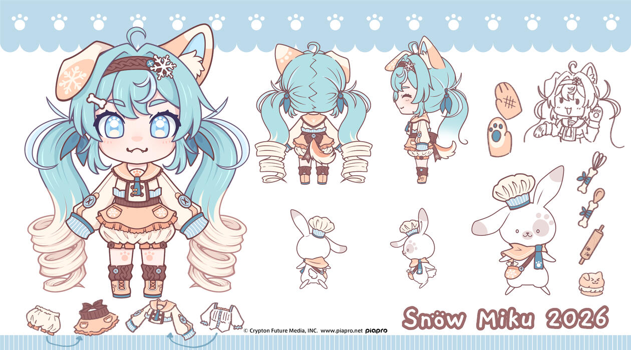 the baker's puppy 2entry for the snow miku 2026 design contest, for the theme of 'Pâtisserie of Happiness'.