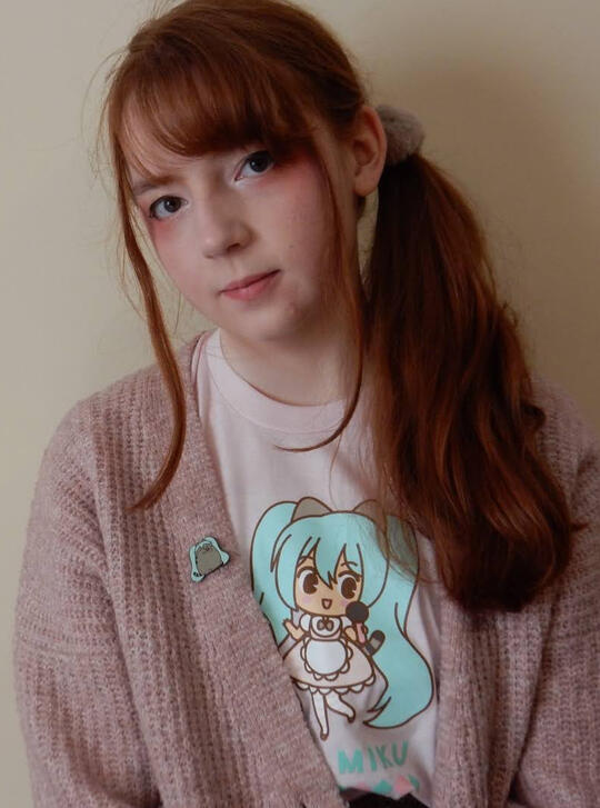 my name is sara. thanks for visiting my portfolio today!!i consider myself a jack of most trades; i love to try new things and have dabbled pretty equally in design, illustration, and sewing. as far back as i can remember, i've always been in the process of making something. I CHOSE TO MAJOR IN DESIGN IN COLLEGE BECAUSE I FELT IT WAS A BROAD ENOUGH SUBJECT TO ENCAPSULATE MANY DIFFERENT AREAS. I GRADUATED FROM sva in may of 2023.im most inspired and influenced by anime, internet, and fandom culture. being involved in both since i was old enough to access a computer, and actively cosplaying and attending anime conventions since i was 11 years old, ive gained an intimate understanding and genuine love of these communities which i feel can be seen in much of my work.when not fervently working on something new, i'm probably showering my old little spaniel, willy, in crazy amounts of attention!!